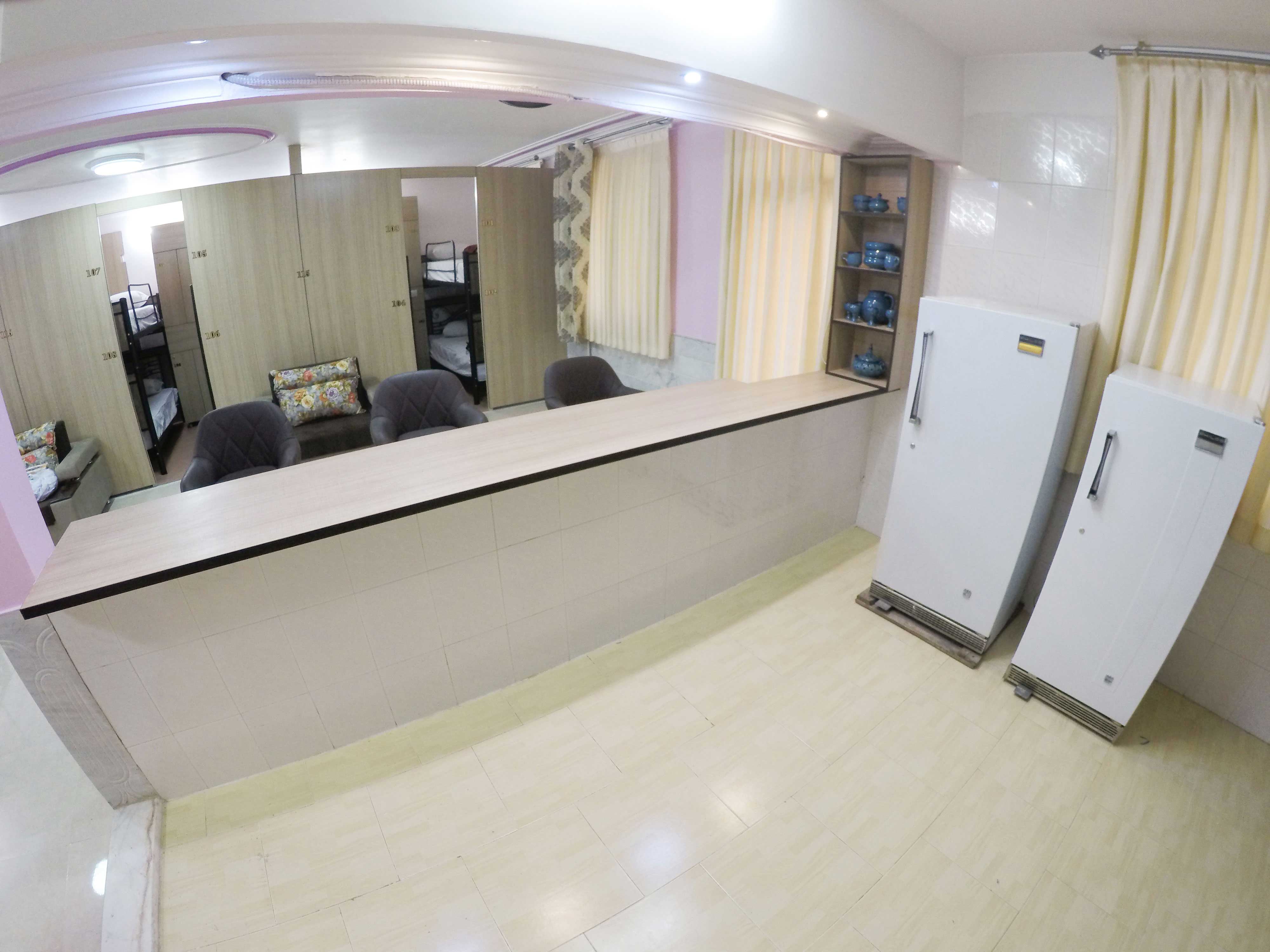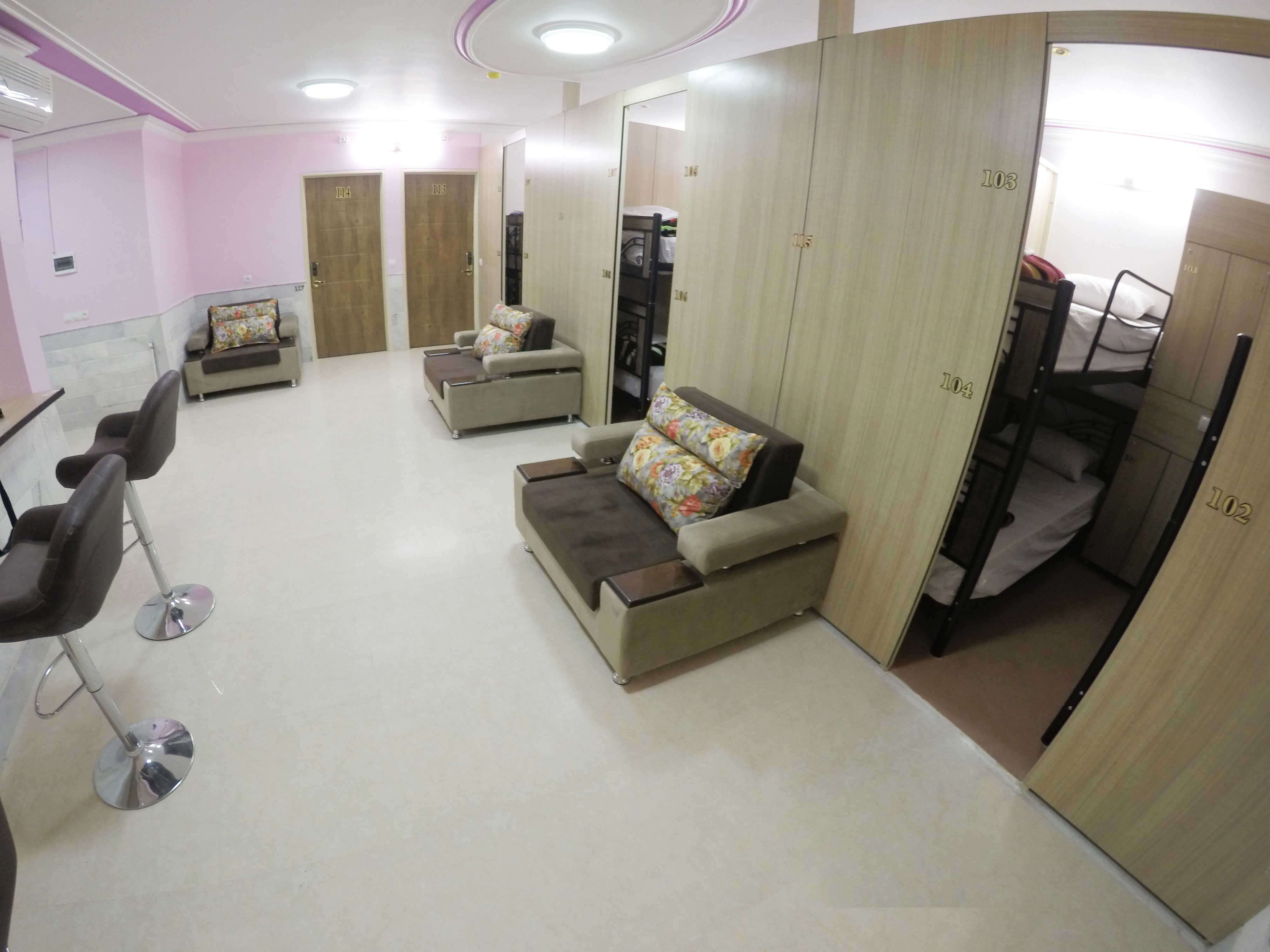 میز و صندلی برای نوشیدن چای و یا خوردن صبحانه در هاستل در قسمت نشیمن اتاق عمومی وجود دارد. این اتاق مخصوص خانواده هاي پر جمعيت و اردوهاست و خانوادههای ایرانی تنها می توانند کل هاستل را یک جا رزرو کنند.